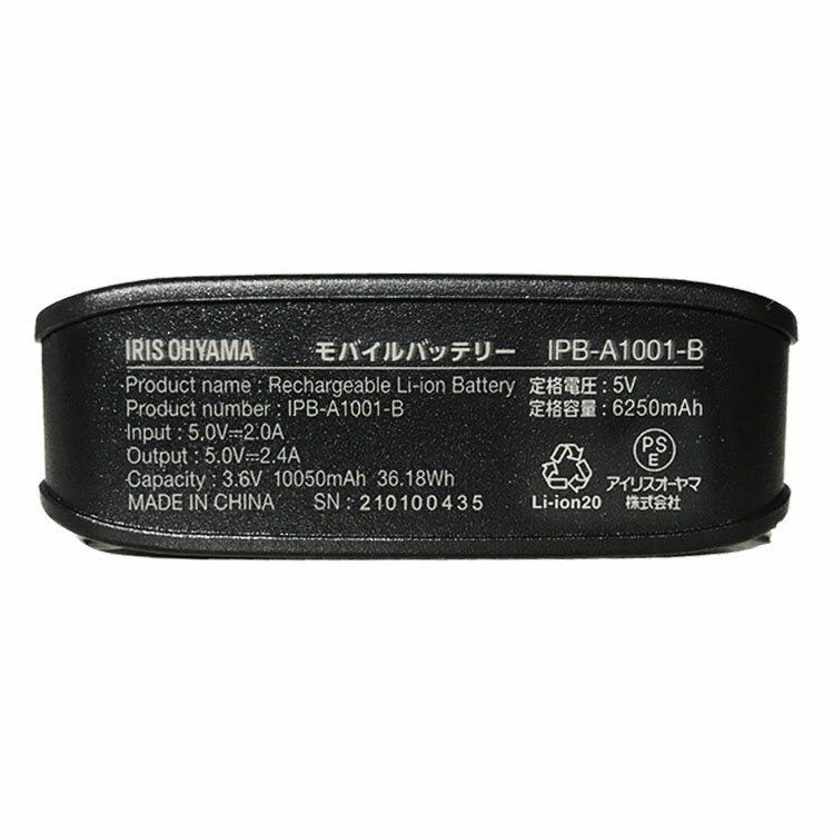 モバイルバッテリー iPhone 大容量 軽量 小型 アイリスオーヤマ10050mAh 充電器 小型 急速 PSE認証 iPhone Android 急速充電 モバイル バッテリー 充電 スマホ充電 USB LUCA 大容量 スマートフォン タブレット アイフォン ケーブル付 USB-A-micro-B IPB-A1001-B