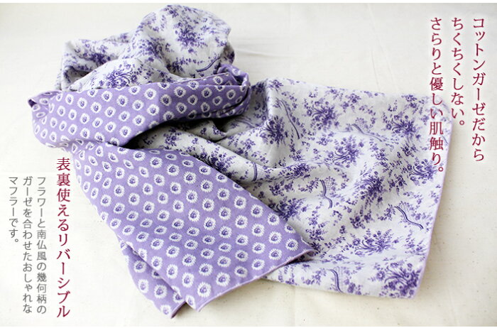 日本製 ガーゼストール フローラル / 約35×180cm レディース ストール マフラー UV UV対策 紫外線対策 日焼け防止 薄手 ロング リバーシブル ガーゼ コットン 綿 春 夏 秋 ギフト