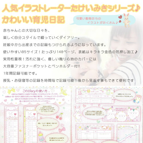 たけいみき ベビーダイアリー クローズピン 〈 たけいみき 育児 育児ノート 成長記録 日記帳 リズム スケジュール 赤ちゃん 成長 マタニティー 出産祝い 妊娠 懐妊 おめでた 〉FM