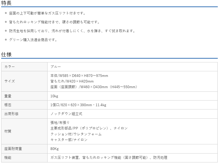 Point! ●座面の上下可動が簡単なガス圧リフト付きです。
