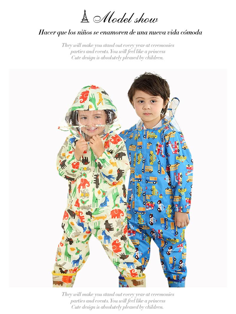 3、雨の日もhappyに!かわいいデザインのキッズレインコート。