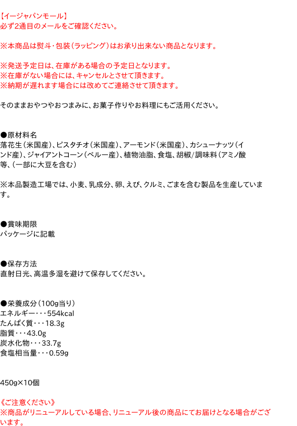 【送料無料】★まとめ買い★ モリウエ ミックスナッツ450g ×10個【イージャパンモール】