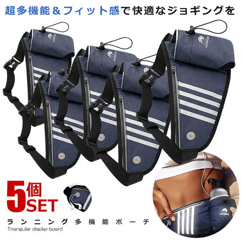 【送料無料】【5個セット】ランニング 多機能 ポーチ 軽量 防水 ジョギングポーチ ペットボトル ホルダー付き 揺れない ウォーキングポーチ 防汗 大容量 登山 DAISHUNO