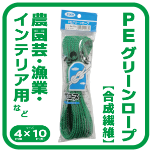 ユタカ PEグリーンロープ (4mm×約10M) ネット・農園芸用・物干し用・漁業他
