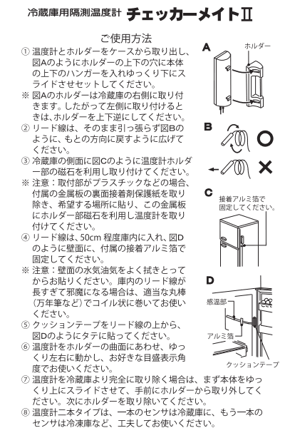 冷蔵庫用温度計チェッカーメイトII(二針)は冷蔵庫や冷凍庫の庫内温度を開閉せずに、外から確認できる温度計。