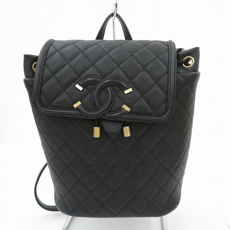 【中古】CHANEL|シャネル キャビアスキン A57090 マトラッセ バックパック リュック デイパック ブラック【f122】